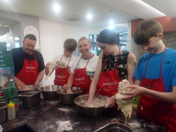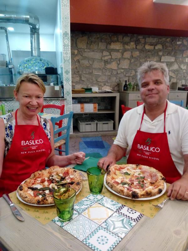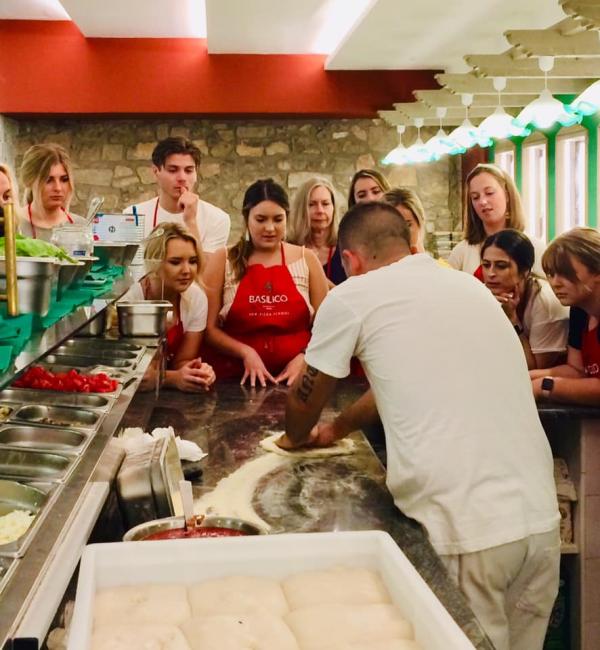 Accoglienza presso BASILICO ITALIA con caffè e dolce. Il programma prevede la produzione dell’impasto, il condimento, la cottura e la degustazione della pizza accompagnata da prosecco, vino o softdrink. Durante l’esecuzione dei vari passaggi, eseguiti direttamente dai partecipanti, il Maestro Pizzaiolo vi darà vari consigli per eseguire una buona pizza anche a casa! Durata del corso 75 minuti.